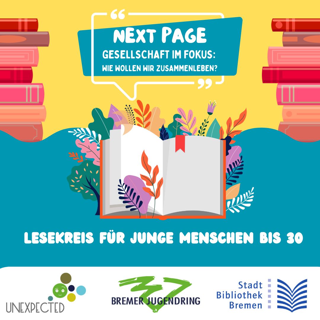 Das Projekt Unexpected lädt alle Interessierten herzlich zum Austausch im Lesekreis Next Page ein. Die Leitfrage des Lesekreises ist: Wie wollen wir zusammenleben? Der Lesekreis ist partizipativ: Ihr bestimmt was wir lesen und wie methodisch vorgegangen wird!